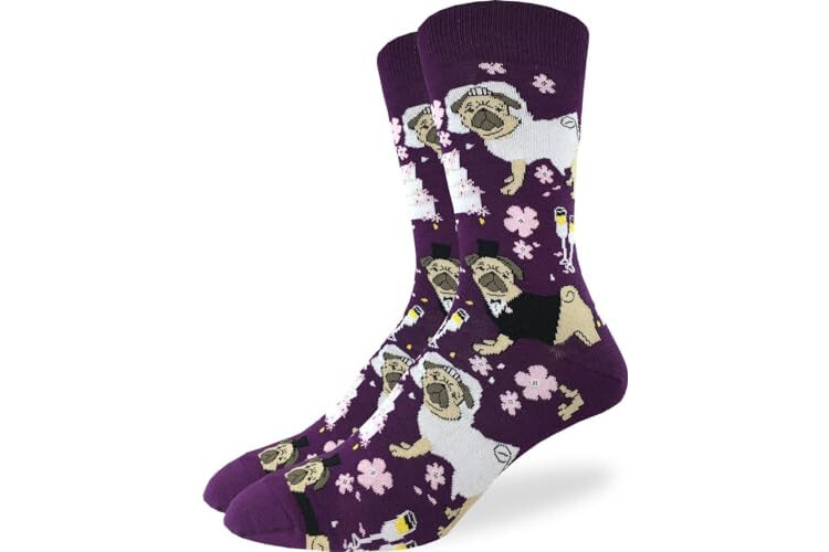 Good Luck Sock Men's Wedding Pugs Dog Socks, Adult, Shoe Size 7-12
