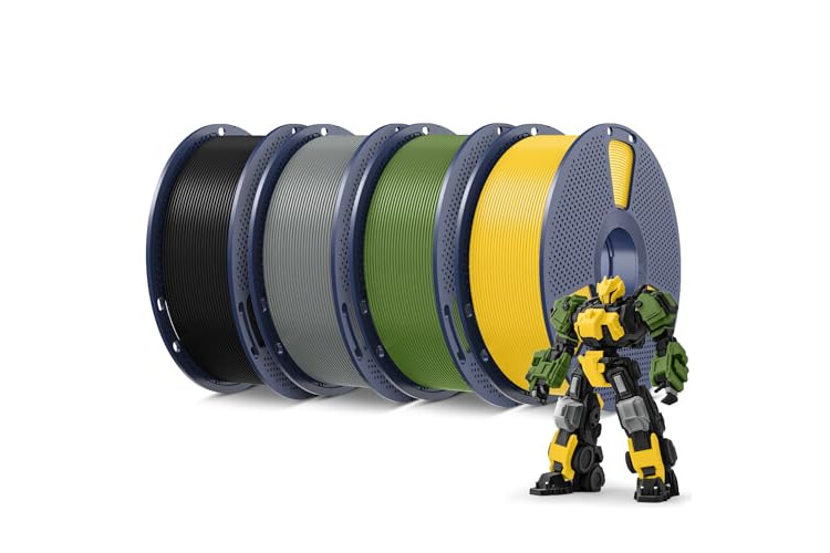 SUNLU 4KG 3D Printer Filament PLA Plus 1.75mm, SUNLU Neatly Wound PLA Filament 1.75mm PRO, PLA+ Filament for Most FDM 3D Printer, 1 kg Spool, 4 Packs, Black+Grey+Olive Green+Vivid Yellow