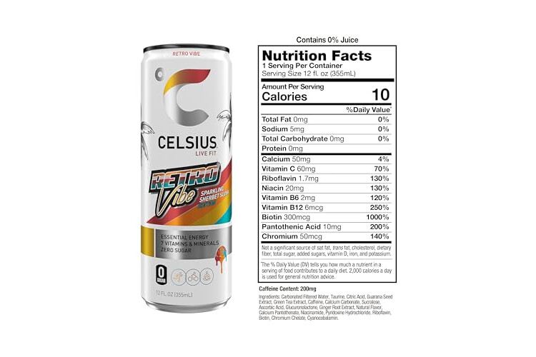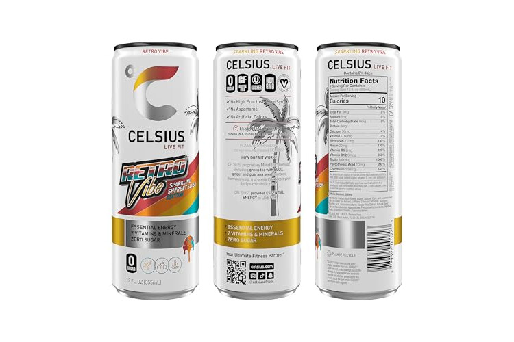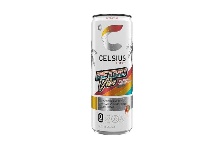 CELSIUS RETRO VIBE Sparkling Sherbet Slush, Sugar Free Energy Drink, 12 Fl Oz (Pack of 12)