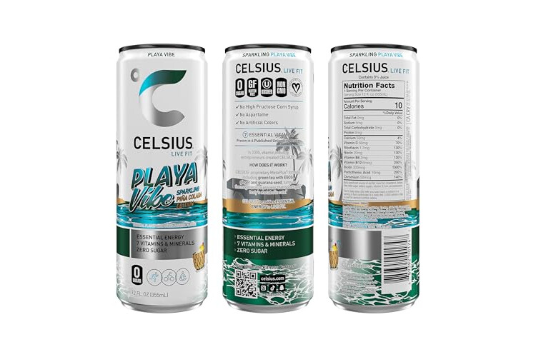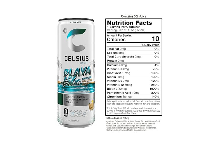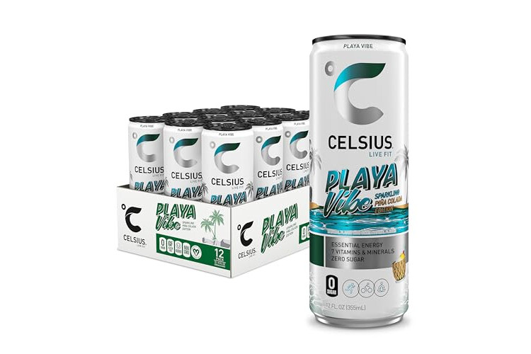 CELSIUS PLAYA VIBE Sparkling Pina Colada, Sugar Free Energy Drink, 12 Fl Oz (Pack of 12)