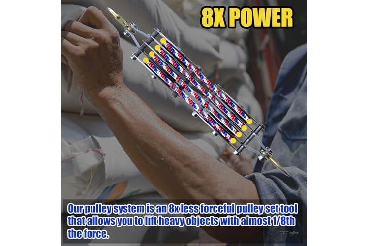 【7:1 Lifting Rate】It's an 8x less forceful pulley set tool that allows you to lift heavy objects with almost 1/8th the force; imagine that you only need 70 lbs of force to haul a motorcycle. A motorcycle can be lifted like a big dog!