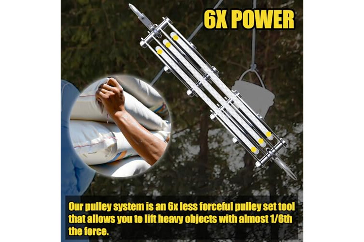 【5:1 Lifting Rate】It's an 6x less forceful pulley set tool that allows you to lift heavy objects with almost 1/6th the force; imagine that you only need 93 pounds of force to haul a motorcycle. A motorcycle can be lifted like a big dog!