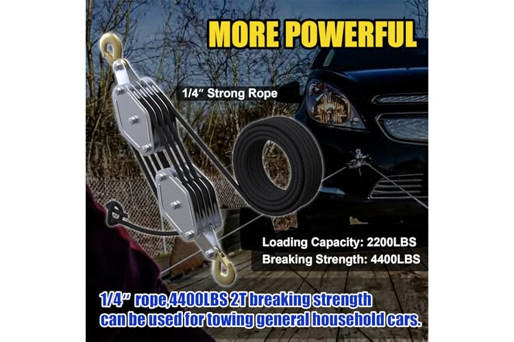 Block and Tackle 4400 LB Breaking Strength Heavy Duty Pulley, 65 Ft Rope Pulley, Upgraded Metal Bearing, 7:1 Lifting Power Pulley System, Pulley Hoist for Lifting Heavy Objects(Black)