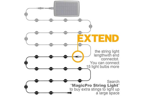 ENERGY EFFICIENT BRIGHT LED BULBS: Forget about electricity cost and use MagicPro Solar Strings lights that is Powered by sunlight during the day, it illuminates for up to 8 hours with a full charge (solar panel require a continuous charge for 6-8 hours). The working time varies with the intensity of sunli...