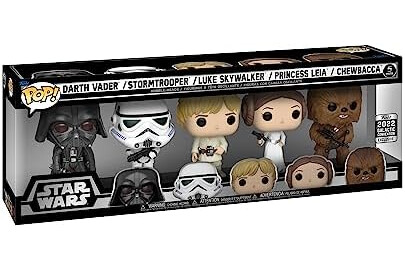 • This Pop! 5-Pack includes Pops! Darth Vader, Stormtrooper, Luke Skywalker, Princess Leia, and Chewbacca all together on a built-in stand