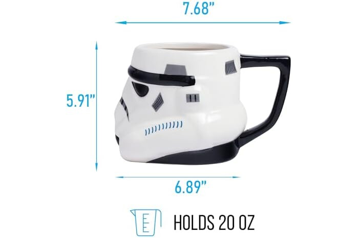 3D SCULPTED COFFEE MUG: Our 3D sculpted coffee cup holds 20 ounces of your favorite latte, cappuccino or drip coffee when you need tap into the force in the morning