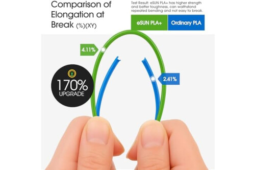 【Dimensional Tolerance +/- 0.03mm】eSUN PLA+ 3D printer filaments are produced with more precise specification. Minimum tolerance and low warping to ensure consistent feeding and stable prints, no bubbles, less stringing, extremely high successful rate.