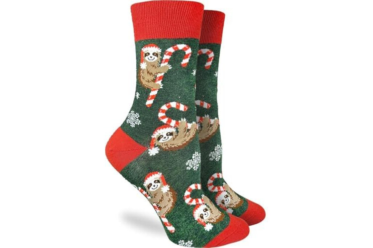 Good Luck Sock Women's Candy Cane Sloths Socks, Adult, Shoe Size 5-9