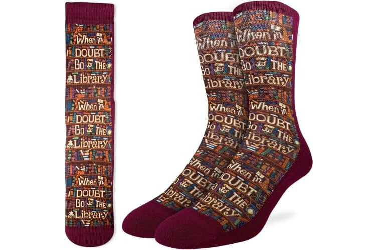 Good Luck Sock Men's Go to the Library Socks, Adult, Shoe Size 8-13