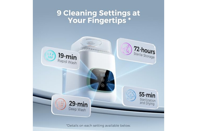 π΅ ππππππππ πππππ πππππππππππ ππ ππππππ π πππ: Freely combine the four modes (Rapid Wash, Normal Wash, Sterilize+Dry, Storage) and customize your settings. In a rush? Opt for the Quick Wash mode, which efficiently cleans your bottles in just 19 minutes.