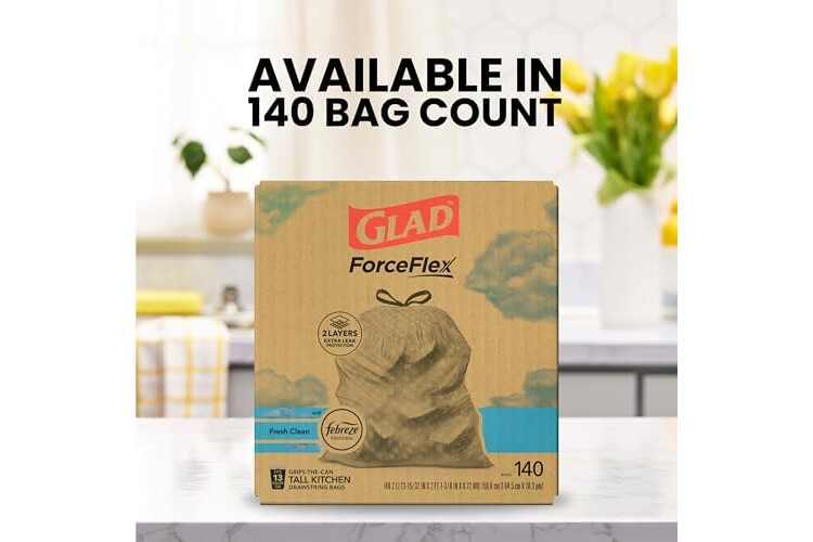 SCENTED GARBAGE BAGS: These Glad kitchen trash bags with Febreze Freshness infuse your space with just a hint of sparkling Fresh Clean scent without being overwhelming for scent-sensitive households