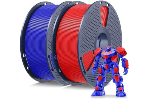 SUNLU PLA 3D Printer Filament, Neatly Wound PLA Filament 1.75 mm, Dimensional Accuracy +/- 0.02mm, Good Vacuum Packaging Consumables, PLA 2kg in Total, 1kg per Spool, Pack of 2,Red+Klein Blue