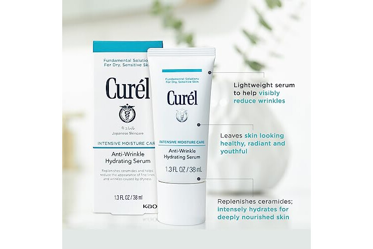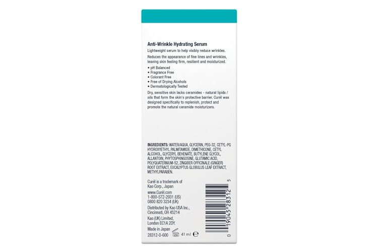 Curel Japanese Skin Care, Anti-Wrinkle Hydrating Serum, Lightweight Serum, Fragrance Free & Colorant Free, For Sensitive Skin, 1.3 Oz