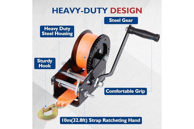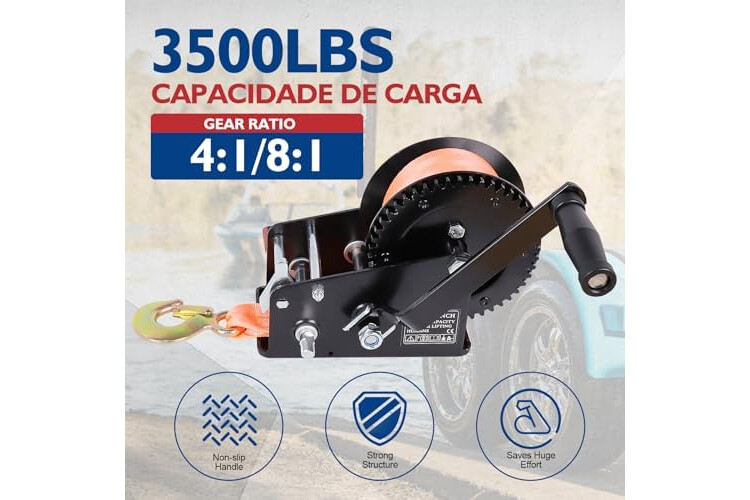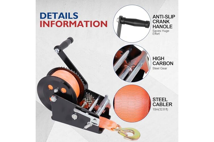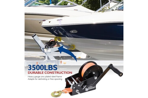 Heavy Duty Boat Trailer Hand Winch 3500Lbs - Manual Hand Crank Winch with 32.8ft Polyester Strap, Dual Speed (4:1/8:1), Rust-Proof for Trailers, Boats, ATV Towing