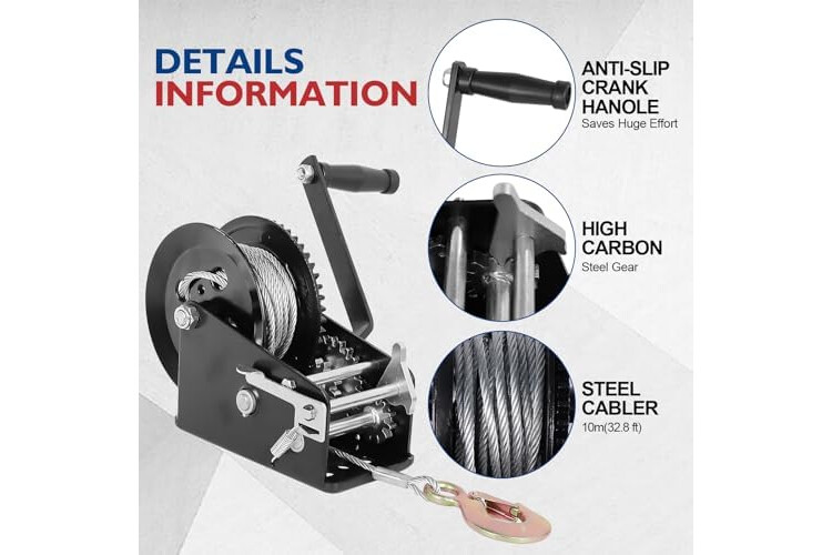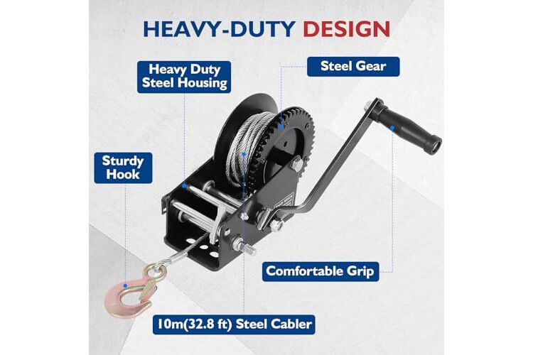 • Manual Trailer Boat Winch with 32.8ft Steel Rope