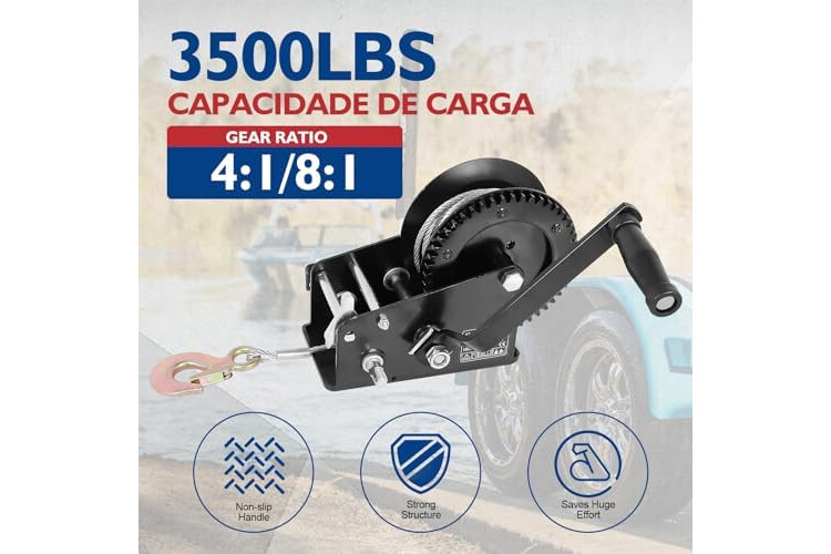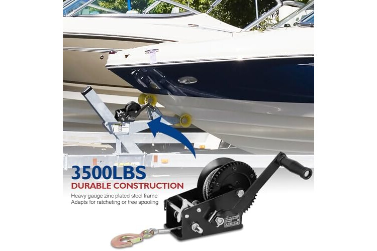 Heavy Duty Boat Trailer Winch – 3500LB Manual Hand Crank Winch with 32.8ft Steel Rope, Two-Speed (4:1 & 8:1), Powder Coated – for Boat, ATV, Utility Trailers