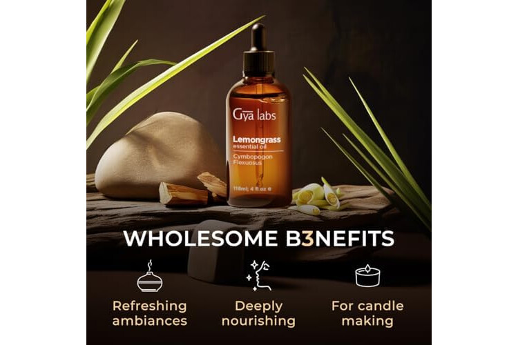 Gya Labs Lemongrass Essential Oil - 4 Fl Oz - for Hair, Skin, Diffuser, Aromatherapy & DIY Candle Making Scent