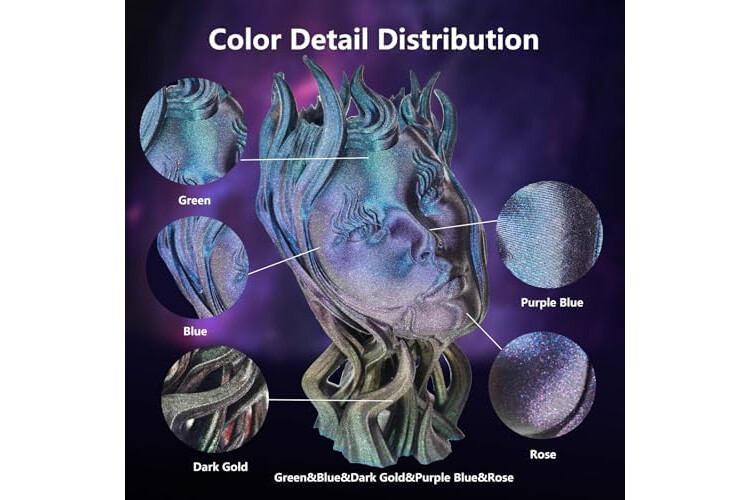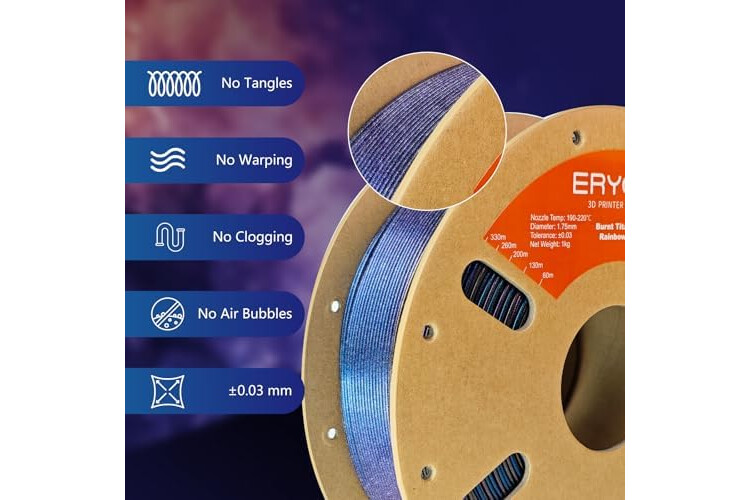Dynamic Color Shift: The Burnt Titanium Rainbow PLA filament changes based on light and angle, creating a unique, futuristic effect.