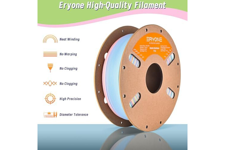ERYONE Matte Rainbow 3D Printer PLA Filament 1.75 +/- 0.03mm, Matte Muticolor Filament PLA 2KG Spool, Matte Macaron Rainbow
