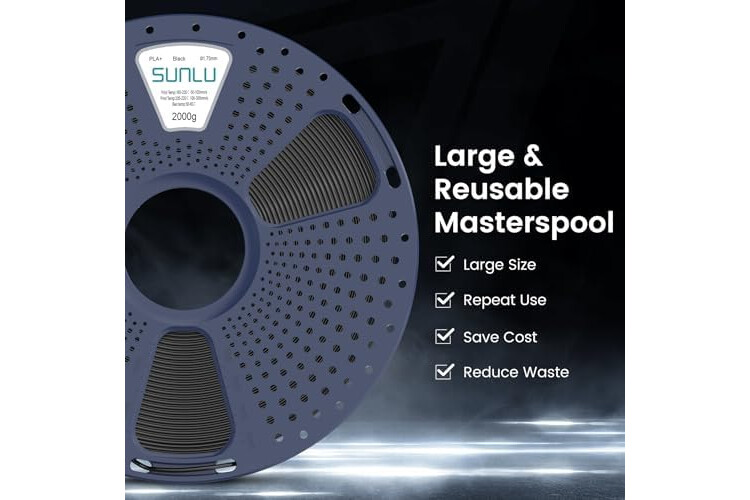 【2KG Large Spool for big project】- Spool Diameter: 242mm, Spool Width:70.5mm, Spool Hub Hole Diameter: 62.99mm. The size of the SUNLU PLA+ filament large spool is suitable for hanging on many 3D printers. Print large models without frequent filament change.