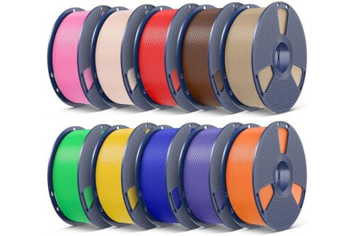 【10 Rolls of 1kg 1.75mm PLA+ Filament, Multiple Color Choices】10 rolls of 1000g SUNLU 1.75mm PLA plus filament. Color: Coffee Brown+Red+Klein Blue+Green+Vivid Yellow+Sunny Orange+Lavender Purple+Pink+Beige+Oak. The design of 1000g PLA+ filament is convenient for customers with multiple color needs. Especially for multi-nozzle 3d printer users and 3d pen users.