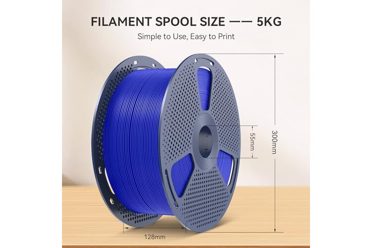 【5KG Large Spool Size】- Spool Diameter: 300mm, Spool Width:120mm, Spool Hub Hole Diameter: 55mm. The size of the SUNLU PLA+ filament large spool is suitable for hanging on many 3D printers. Print large models without frequent filament change.