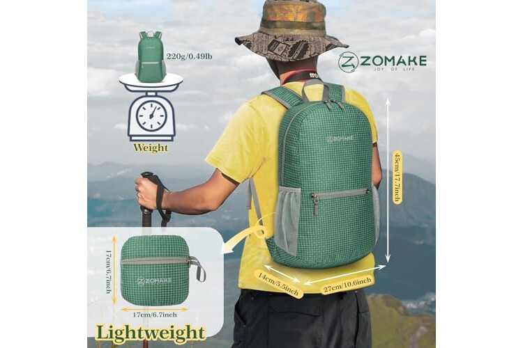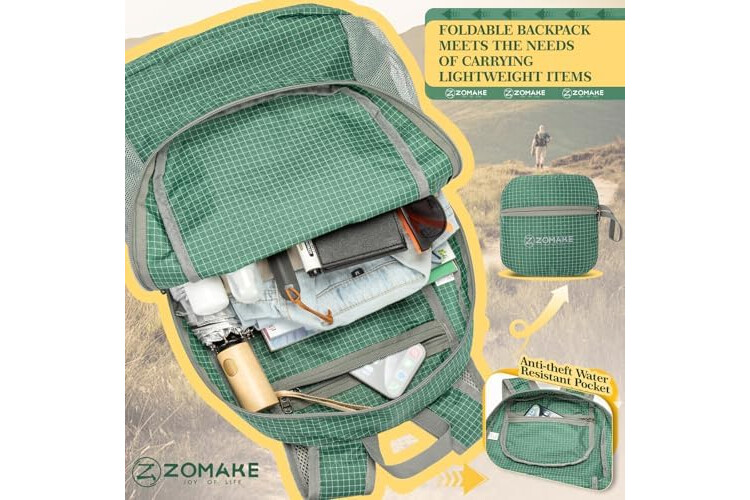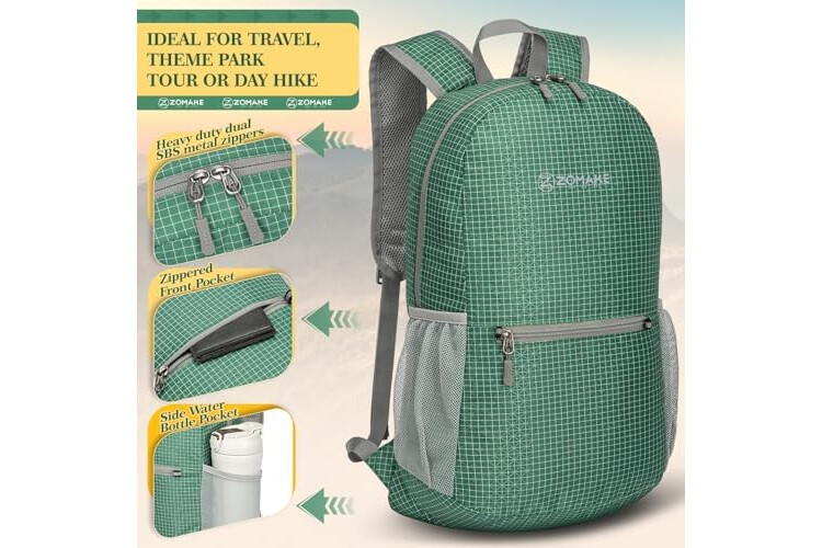 ZOMAKE Ultra Lightweight Hiking Backpack 20L - Packable Small Backpacks Water Resistant Daypack for Women Men(Forest Green Plaid)