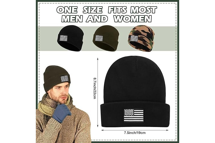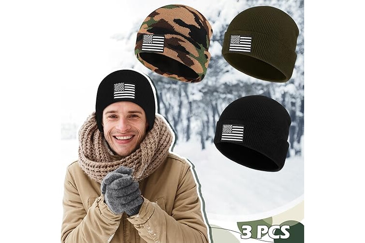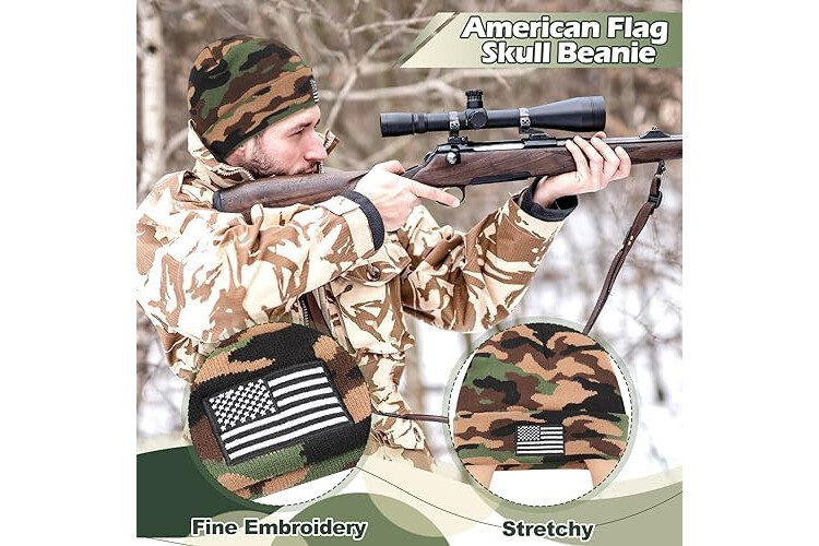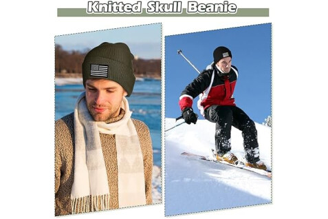 Liitrsh 3 Pcs Knitted Skull Beanie American Flag Military Beanie Hat Tactical Winter Warm hat Flag USA Acrylic Watch Cap for Men Women Hiking Outdoor