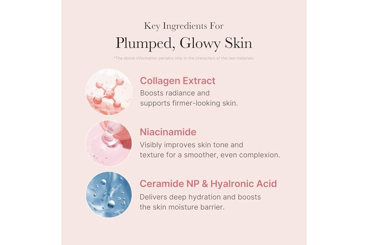Powerful Ingredients: Ceramide NP for skin barrier and hydration, Collagen Extract for elasticity and youthful complexion, and Adenosine for reducing fine lines through skin renewal