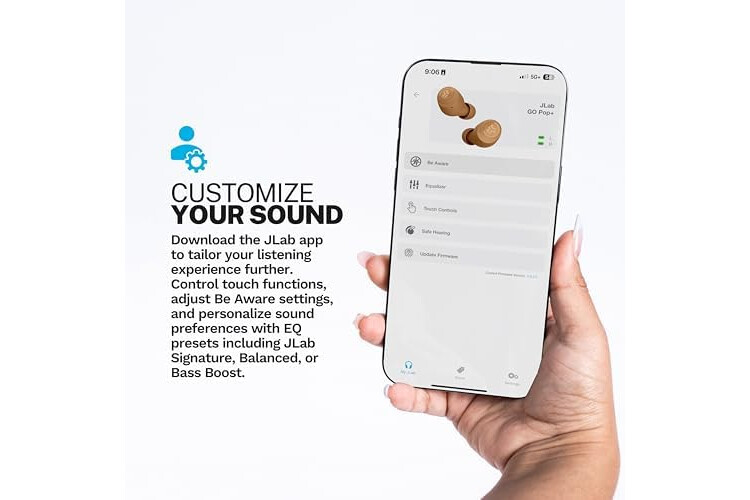 Custom Sound: Download the JLab app to tailor your listening experience further. Control touch functions, adjust Be Aware settings, and personalize sound preferences with EQ presets including JLab Signature, Balanced, or Bass Boost.