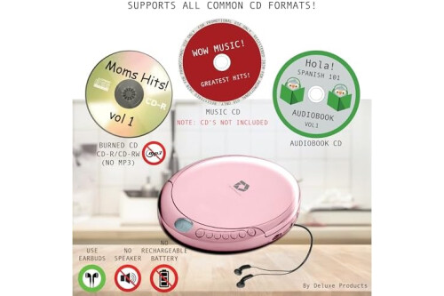 Plays All Formats - The Portable CD Player is easy to use and plays back your favourite Music CD, CD Audio books, Kids CD Disc, Recordable CDs CD-R, or ReWritable CDs CD-RW. NOTE: Does not support the MP3 CD's