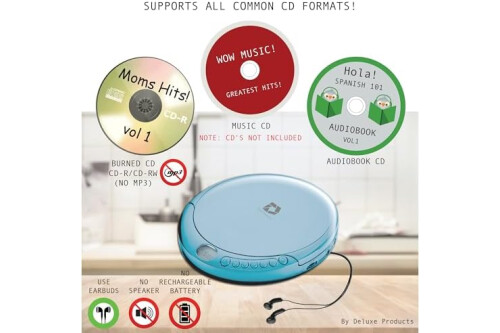 Plays All Formats - The Portable CD Player is easy to use and plays back your favourite Music CD, CD Audio books, Kids CD Disc, Recordable CDs CD-R, or ReWritable CDs CD-RW. NOTE: Does not support the MP3 CD's