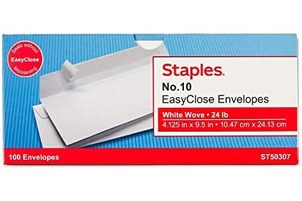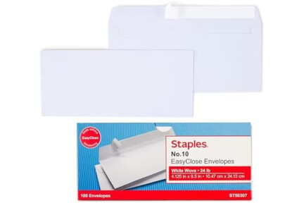 Staples 394053 Easyclose #10 Envelopes 100/Box