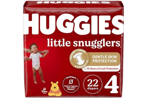 Huggies Size 4 Diapers, Little Snugglers Baby Diapers, Size 4 (22-37 lbs), 22 Count, Packaging May Vary