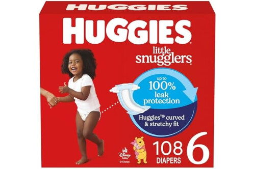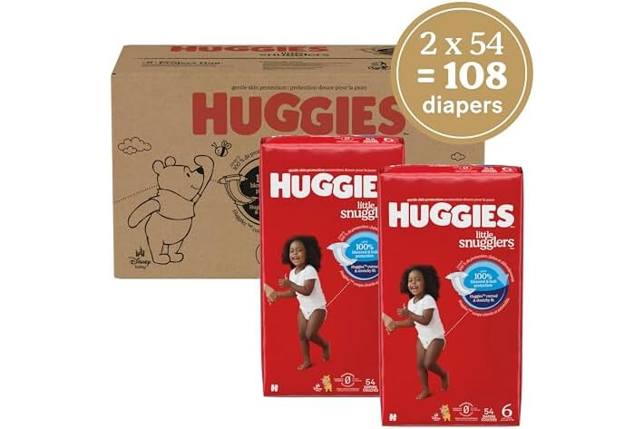 Huggies Size 6 Diapers, Little Snugglers Baby Diapers, Size 6 (35+ lbs), 108 Count (2 Packs of 54), Packaging May Vary