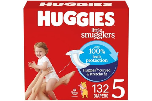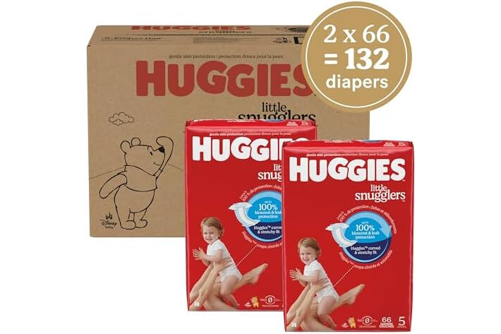 Huggies Size 5 Diapers: 132 Little Snugglers Baby Diapers (2 Pakcs of 66), size 5 (27+ lbs), packaging may vary