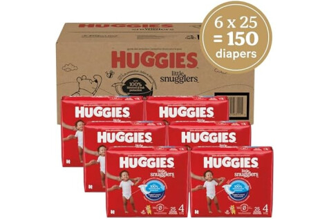 Huggies Size 4 Diapers: 150 Little Snugglers Baby Diapers (6 Packs of 25), size 4 (22-37 lbs), packaging may vary