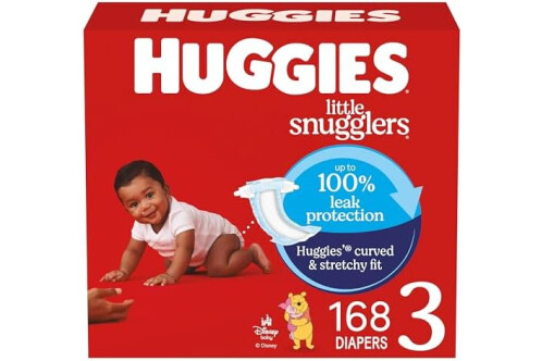 Huggies Size 3 Diapers, Little Snugglers Baby Diapers, Size 3 (16-28 lbs), 168 Count (6 Packs of 28), Packaging May Vary