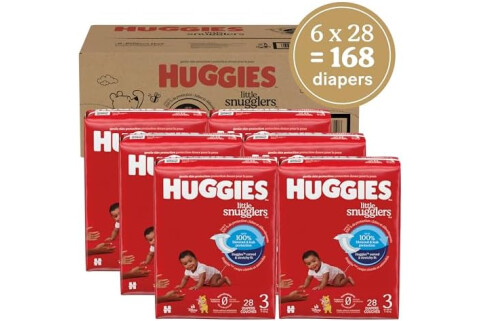 Huggies Size 3 Diapers: 168 Little Snugglers Baby Diapers (6 Packs of 28), size 3 (16-28 lbs), packaging may vary
