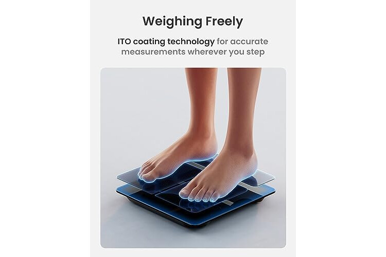Sleek Design, Accurate Results: The modern, minimalist design with a high-precision ITO-coated surface not only complements your home decor but also enhances measurement accuracy, surpassing regular four-electrodes scales. Achieve accuracy down to 0.05kg/0.2lb.