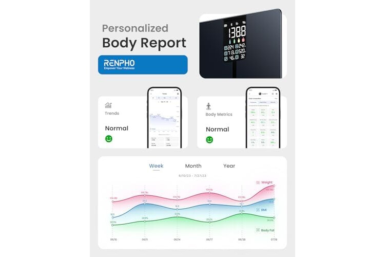 The Renpho Health app syncs with Apple Health, Samsung Health, and MyFitnessPal.
