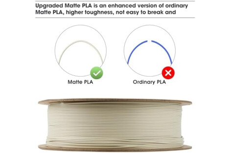 【High Toughness & Better Adhesion】Compared to normal PLA filament, eSUN Matte PLA has higher toughness.Printed models are not easy to break or crack, which can be widly used in accessory, home decoration, toy, sculpture, shell and COSPLAY. With upgraded paper reel, eSUN Matte PLA has better adhesion and printibility which improves the problem of bottom adhesion on the plate.