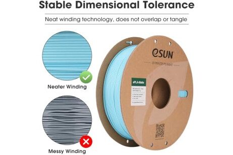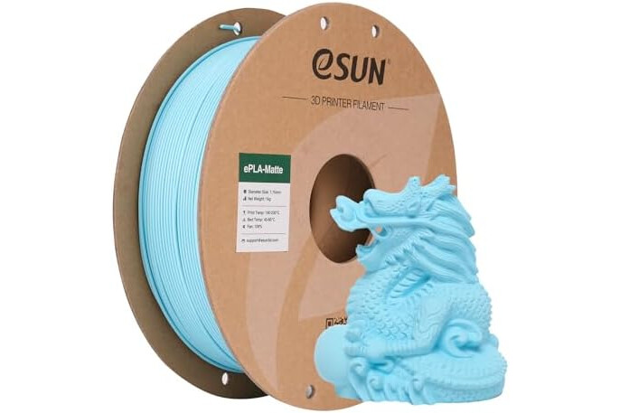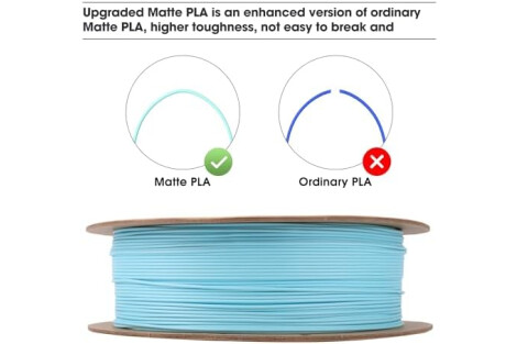 【High Toughness & Better Adhesion】Compared to normal PLA filament, eSUN Matte PLA has higher toughness.Printed models are not easy to break or crack, which can be widly used in accessory, home decoration, toy, sculpture, shell and COSPLAY. With upgraded paper reel, eSUN Matte PLA has better adhesion and printibility which improves the problem of bottom adhesion on the plate.