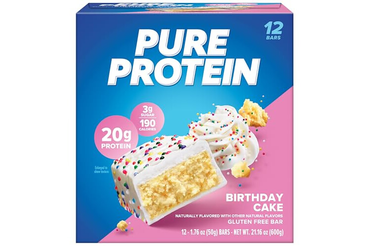 Pure Protein Bars, High Protein, Nutritious Snacks to Support Energy, Low Sugar, Gluten Free, Birthday Cake, 1.76 oz, Pack of 12 (Packaging May Vary)