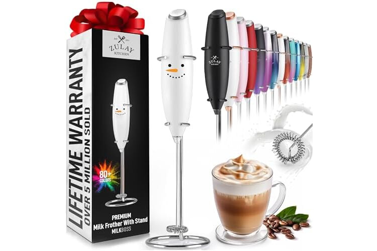 Zulay Kitchen Powerful Milk Frother Wand - Ultra Fast Handheld Drink Mixer - Electric Whisk Foam Maker for Coffee, Lattes, Cappuccino, Matcha & Creamer
