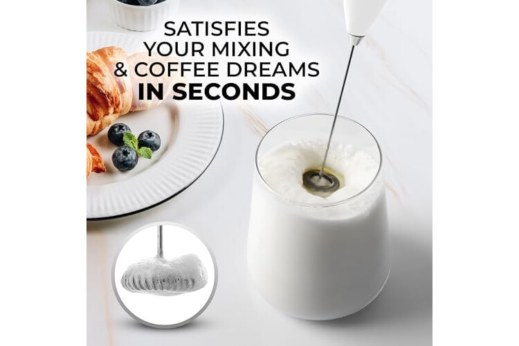 MAKE RICH, CREAMY FROTH IN SECONDS: Create café-quality foam for coffee, lattes, cappuccinos, hot chocolate, and matcha with this handheld frother wand. Perfect for milk, cream, or non-dairy alternatives.