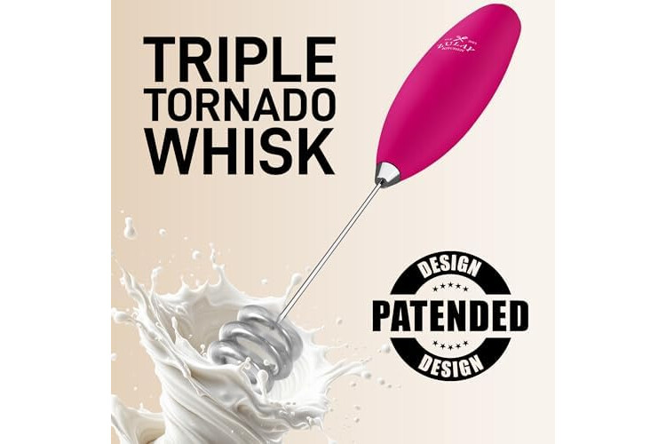 Zulay Kitchen Patented Tornado Triple Whisk Milk Frother with 4 Duracell Batteries – Handheld Foam Maker for Coffee, Lattes, Matcha & Hot Chocolate – Rich, Creamy Froth in Seconds
