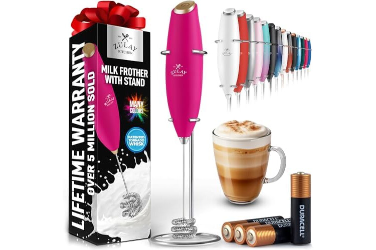 • PROVEN AND TRUSTED QUALITY: Made with high-quality materials, this coffee frother handheld works on all types of milk—whole, almond, soy, cashew, or cream. Backed by the Zulay Lifetime Guarantee, it won’t rust or break.