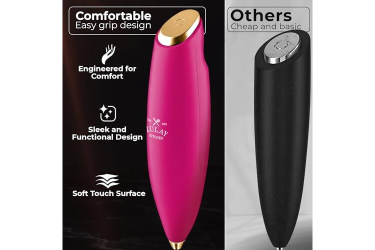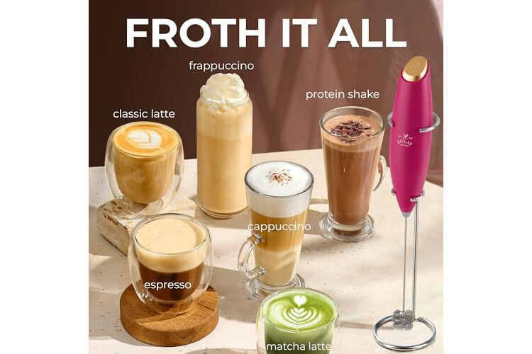 • MAKE RICH, CREAMY FROTH IN SECONDS: Create café-quality foam for coffee, lattes, cappuccinos, hot chocolate, and matcha with this handheld frother wand. Perfect for milk, cream, or non-dairy alternatives.