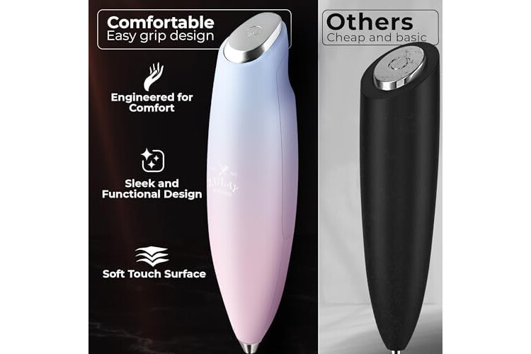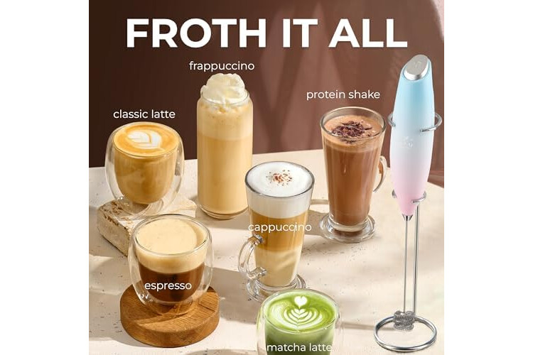 • MAKE RICH, CREAMY FROTH IN SECONDS: Create café-quality foam for coffee, lattes, cappuccinos, hot chocolate, and matcha with this handheld frother wand. Perfect for milk, cream, or non-dairy alternatives.